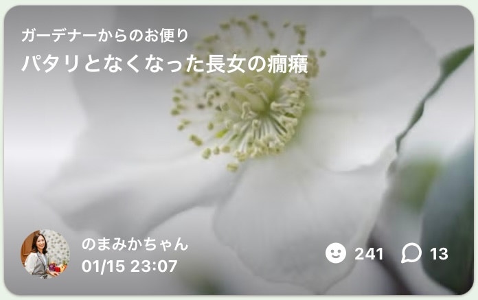 ガーデナーのまみかが憂鬱胆汁の長女ちゃんとの親子関係の拗れ、実母様からの気づきの一言✨そして自身の体調不良により長女ちゃんの変化に対する感謝と不安が赤裸々に綴られています🥺締めくくりの今年の抱負も素敵✨