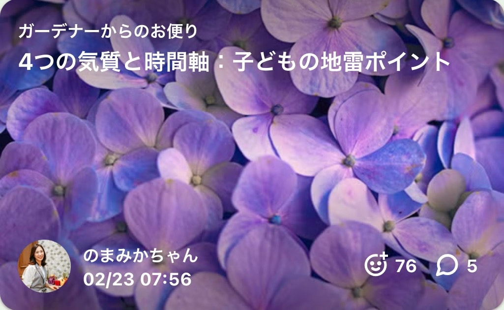 4つの気質別に、子どもの時間軸と地雷ポイントがわかりやすく解説されています✨子どもの怒りは反抗やわがままだけではないかも!?ママの子どもに対するイライラを1つでも減らすべく、まずは子どものストレス回避を目指してみませんか✨
