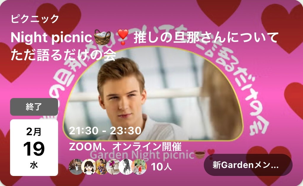 旦那さんが推しと熱く語る@みはちゃん が開催してくれたピクニック(※)イベント、その名も『推しの旦那さんについてただ語るだけの会』❣️